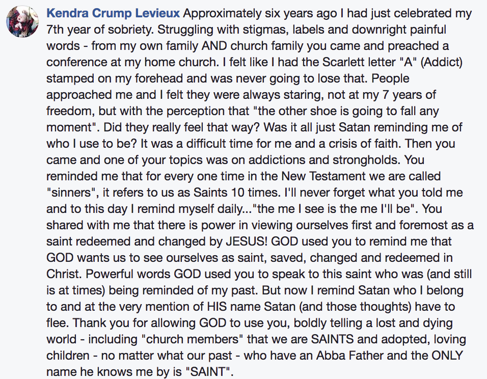 "Best spiritual renewal conference in my 18 years of service at our church... Humor, personality and depth of Scripture... our church still talking about it."